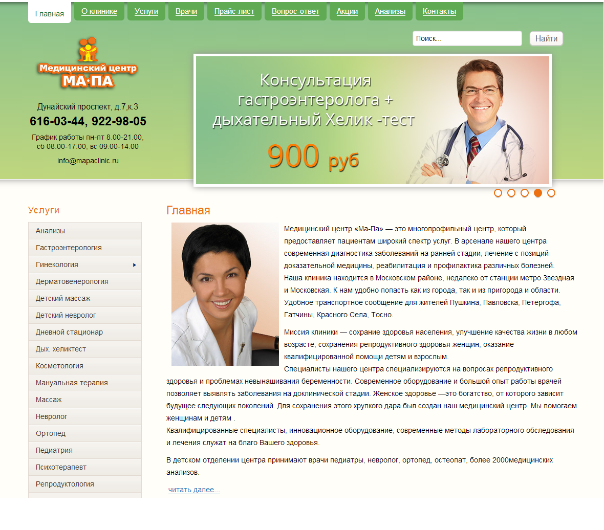 Создание шаблонного сайта для Медицинского центра МА-ПА.
